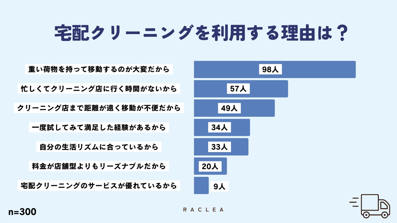 7. 宅配クリーニングを利用する最大の理由は「重い荷物を持って移動するのが大変だから」