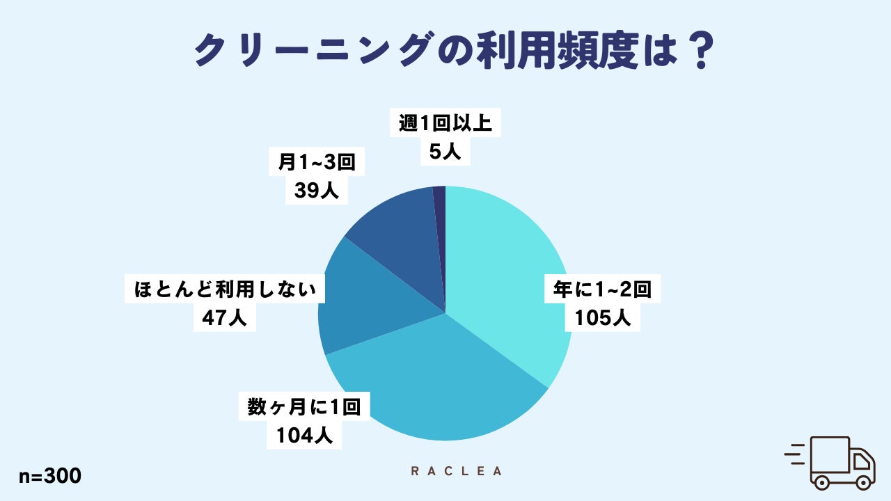 クリーニングの利用頻度で最も多いのは「年に1~2回」利用するという回答で全体の約3割に。